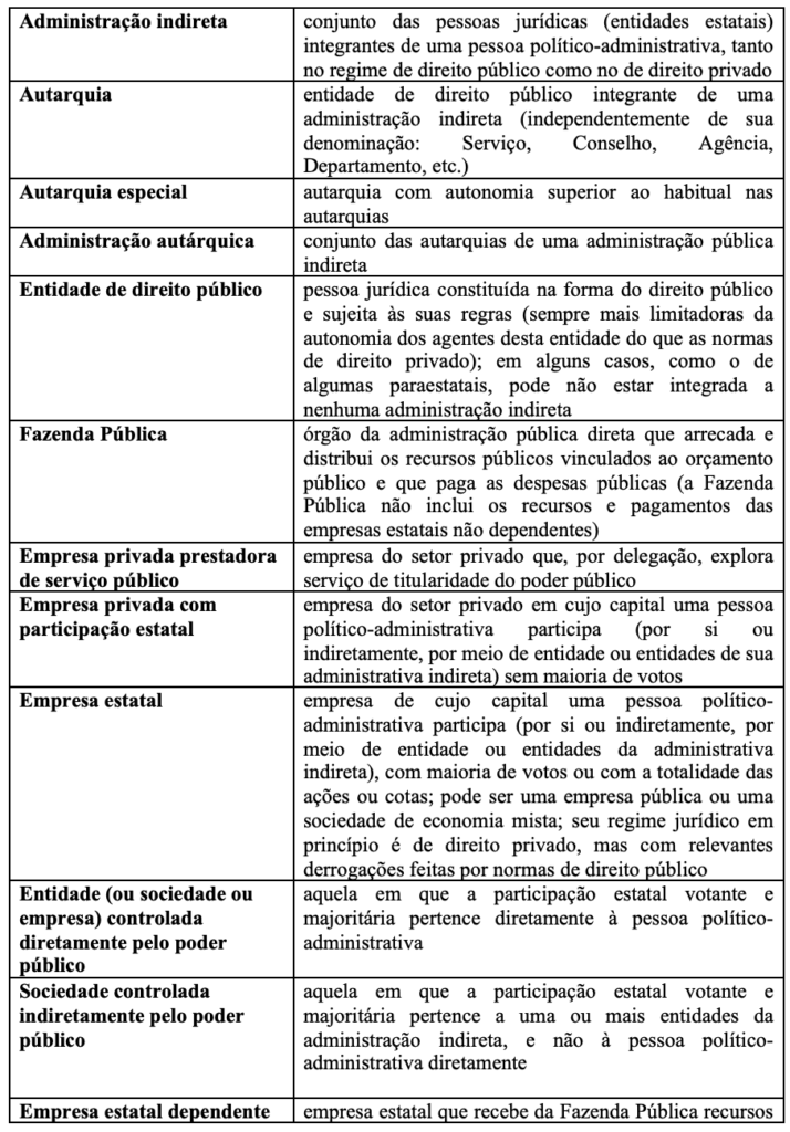 Entidades da administração indireta adotam ou o formato de direito público ou o comum (de direito privado). As diferenças têm a ver com estrutura jurídica e autonomia.